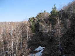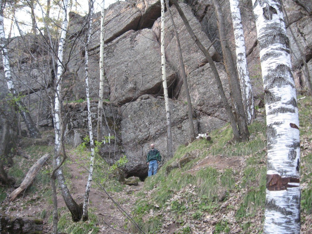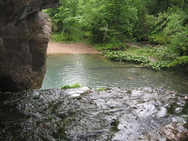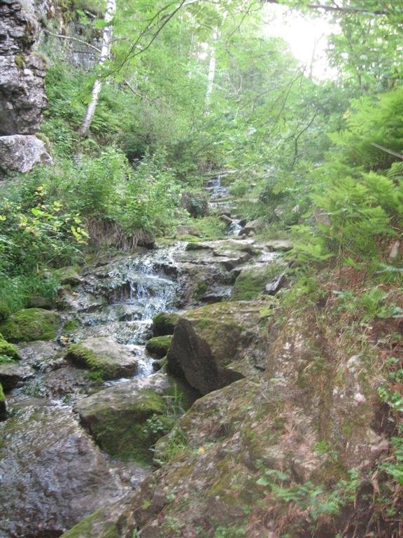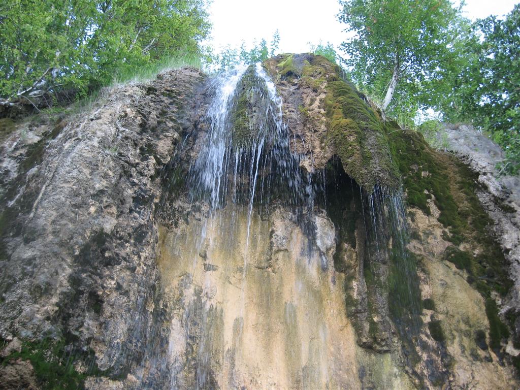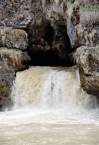 Во время весеннего снеготаяния сила восходящих потоков воды увеличивается и устремляется под большим давлением по трещинам-сифонам. Но она непостоянная и носит пульсирующий характер. Взрывается весной и усмиряется летом. И так век за веком без устали, разрушая твердь горы, вода образует полость пещеры, названной "Сифонная". В том месте, где вода выходит по трещинам в пещеру, на потолке образуются куполообразные возвышения, в которых можно встать во весь рост. Весенний поток, наполнив полость Сифонной пещеры, устремляется на юг - в сторону озера. Падает с уступа на пол Атышской пещеры и образует в этом месте углубление, которое называется водобойный котел. Ежегодное весеннее буйство разрушает и дно Атышской пещеры, образуя в ее середине почти ступень. .JPG)