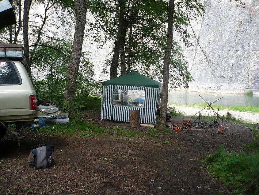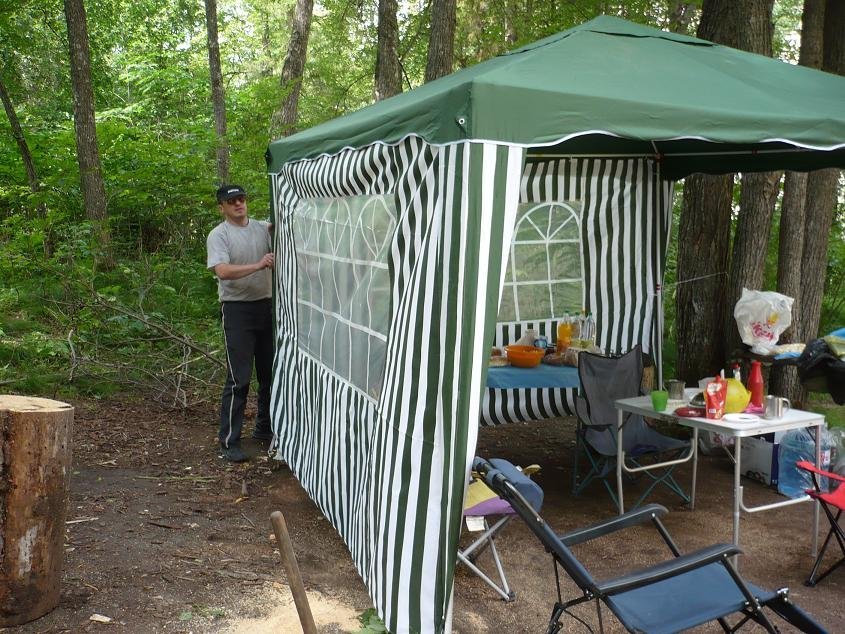 Приехав на место, с удивлением убедились что наше прошлогоднее место свободно, но значения этому не придали, и зря. Разбили лагерь, установили свежекупленный шатер 3х3 метра с двумя стенками.