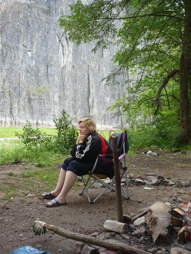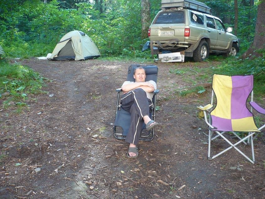 Но мы как то проигнорировали это - ведь мы на внедорожнике, нам все доступно :). На третий день что то начало покалывать в "пятой точке" и нашептывать: а не пора ли нам домой? Так нет же, решили остаться еще на сутки. С утра солнышко, теплынь, и... вода около обрывчика лагеря. Начали тихонько собираться домой, и в 16.00 выехали.