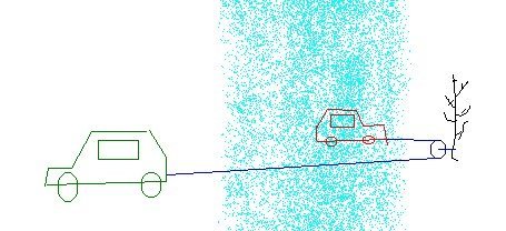 Красным тут изображена застрявшая во льду машина, зеленым - вытягивающая.