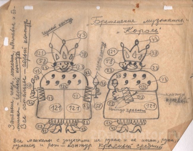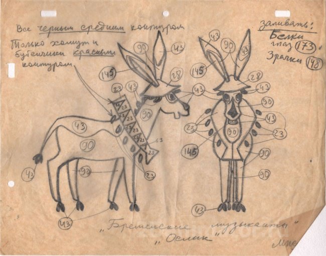 - «Что же касается фильма „Бременские музыканты“, то на нём одновременно работали 16 художников-мультипликаторов. Только очень малый режиссёрский опыт мог заставить меня пойти на такой эксперимент. Больше этого я себе никогда не позволяла! — рассказывает Инесса Ковалевская, — Поскольку с большинством художников-мультипликаторов на фильме „Бременские музыканты“ я познакомилась впервые, то задания-сцены поначалу раздавались наугад, без учёта способностей и особенностей данного исполнителя. Только через некоторое время, после просмотра первых проб мультипликата, я стала лучше понимать, кому и какую предложить работу».