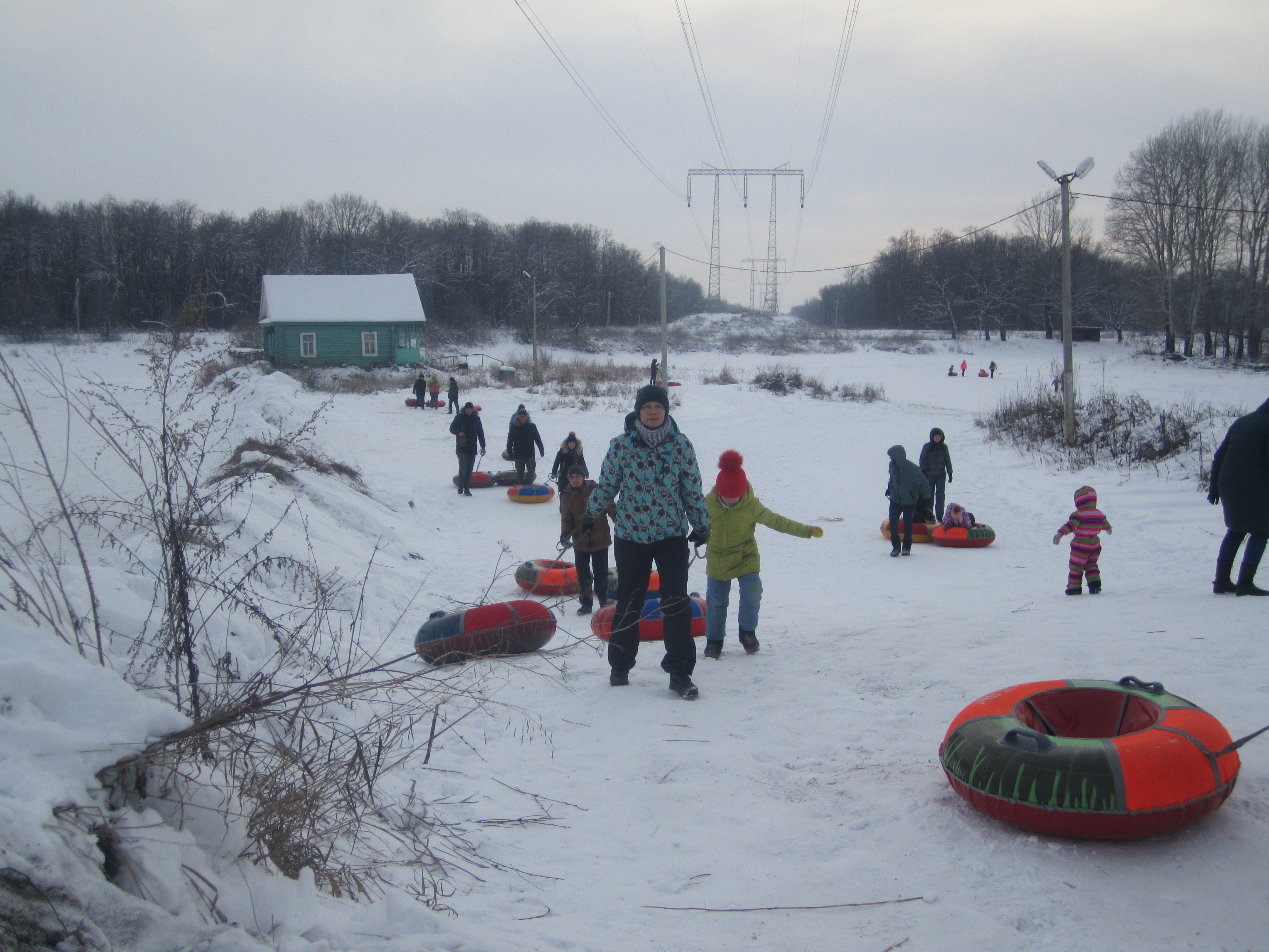 Приехали туда около четырех, народу было очень мало, тюбингов было достаточно, горки почти пустые. Так что накатались от души на всех трассах. Народ стал подтягиваться только ближе к вечеру.