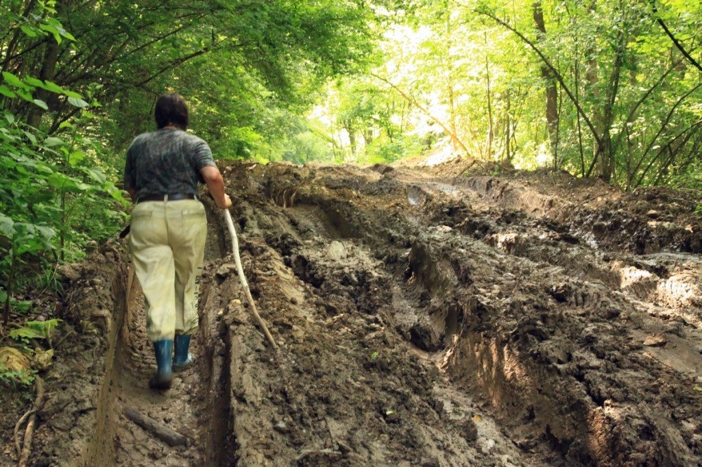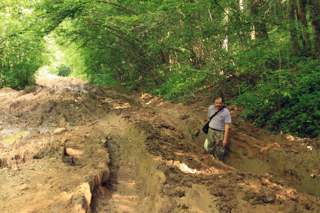 Руслан посоветовал: «Вы не торопитесь рано выходить, где-то в 8.30. лесовозы пойдут. В поселке не посадят, а на дороге подберут». Проехавшие лесовозы мы услышали спросонок ещё 7 не было(потом Руслан сильно извинялся). Погода прекрасная, дорога местами подсохла, комарики правда покусывают. Собрали что надо и с надеждой, что лесовоз ещё догонит, двинулись в путь. Налегке шли бодро (даже странно после четырехдневного сидения в машине). Лужи обходили, в грязь пытались не лезть, на бродах разувались или варианты неногомочильные искали.