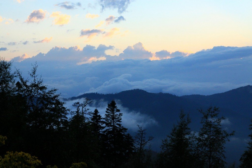 Дошли до родника, воды набрали. Тут бы и расположиться, но балаган манит – там же печка есть, а мы уже все до трусов мокрые. Добрели, труба видна, последний подъём… Там две группы, тридцать человек народу и два десятка палаток! Ступить некуда! Кто-то поздоровался, сразу объяснили, что местов тут нет, а вот там-то и там-то можно что-то поискать(предложенные варианты были абсолютно бесперспективные, а про полянку палатки под три, которую мы обнаружили рядом с тропой на следующий день, похоже просто никто не знал). Подойти к костру погреться даже никто не заикнулся… Шок!!! Ищем в сумерках, промокая окончательно в высоченных травах, куда приткнуться. Нашли! Не люкс, но вариант.