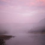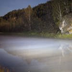 поставили с брательником фотоаппарат на штатив, выдержка 30 секунд. а моей задачей было "рисовать" фонарем нужные куски композиции. стелящийся тончайший туман конечно передать невозможно, который будто подвешен над водой и реагирует на малейшие дуновения (например можно сдуть кусок тумана метров 5 от себя)