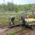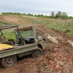 хайджек стоит на досках и кирпичах. к моменту подъема машины досок и части кирпичей уже не видно. под ноги тоже приходится класть кирпичи, иначе они тонут в глине и вытаскивать их тяжело.