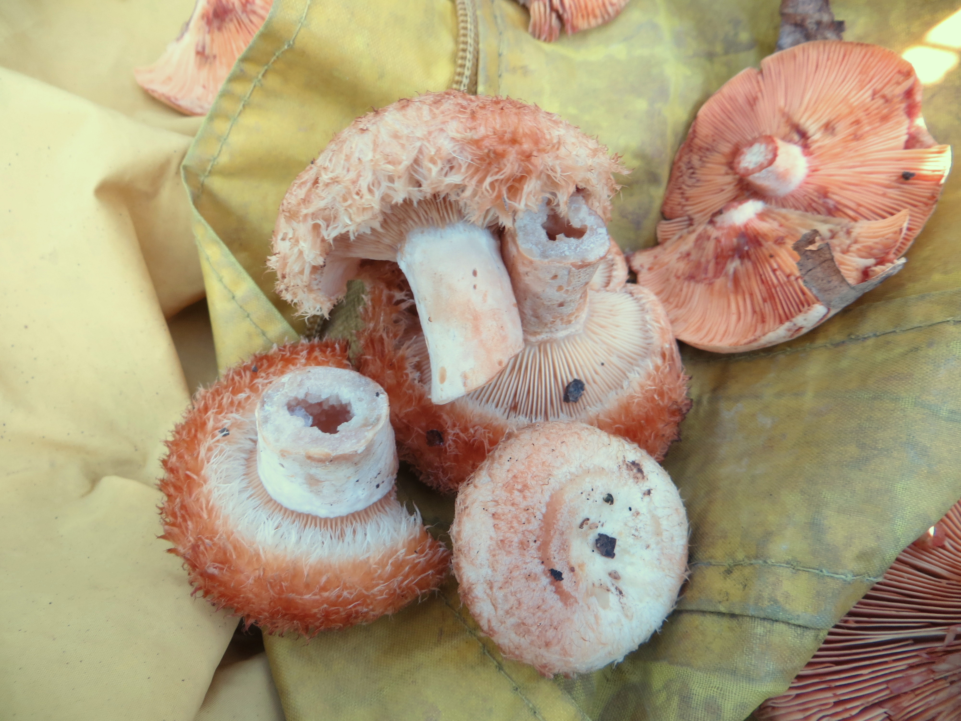 Куртка, на которой лежат грибы - ядовито-желтая, и заняла весь фон. Вот автомат цветокоррекции фотика и попутал цвета...