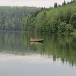 На лодках приплывать приплывали, но в основном рыбу отпугивали, да один раз рыбнадзор появился, повыдергивав все наши якоря. Место действительно дикое - залив далеко от основной Павловки, и близ деревень никаких нет, соответвенно нет накатанных дорог. Проходили по старой зарозшей дороге, расчищая от бревен.