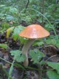 Или красноголовик еловый. Этот гриб встречается не очень часто. Предпочитает расти в тёмных и сырых еловых лесах, образуя микоризу с елью – этим и отличается от других грибов рода. Шляпка у гриба более бледная, чем у красноголовника соснового, преимущественно оранжево-красного цвета.