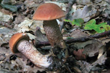 Или красноголовик дубовый. Шляпка у гриба кирпично-красная, часто коричневая, бархатистая, ножка покрыта пушистыми коричневого цвета чешуйками, к низу равномерно утолщенная. Растет, как и его брат подосиновик красный, с июня по сентябрь, образуя микоризу с дубами.