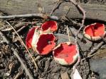 Снег растаял, и в лесу можно встретить очаровательные ярко-красные чашечки. Гриб появляется в апреле и плодоносит до середины мая. Растет на гниющей древесине, на опавших ветках. Этот красивый гриб больше напоминает бокальчик: ножка до 3 см, диаметр шляпки 1-5 см с изогнутыми краями. Саркосцифа съедобна, но какой в этом смысл? Гриб безвкусный и очень резиновый. Лучше просто полюбоваться грибом, ведь в таком еще сером лесу ярко-красная саркосцифа является по-настоящему украшением.