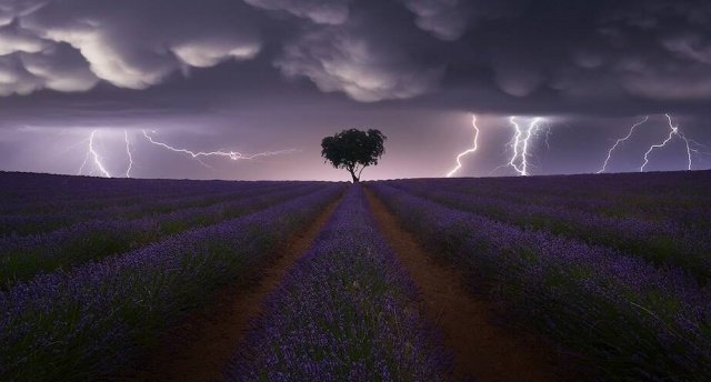 Гроза в лавандовом поле. Снято в провинции Гвадалахара, Испания. (Хуан Лопес Руис)
