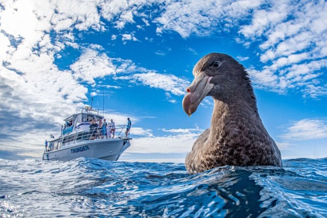 Северный гигантский буревестник плавает вдоль рифа Нингалу в Австралии. (Наоми Роуз)