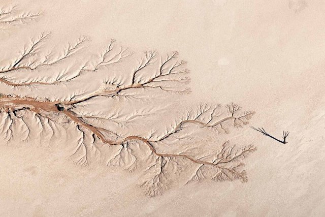 Сделана фотография в Намибии, старое дерево - верблюжья колючка словно тянется своей тенью к высохшей реке Цаучаб. (Джей Руд)