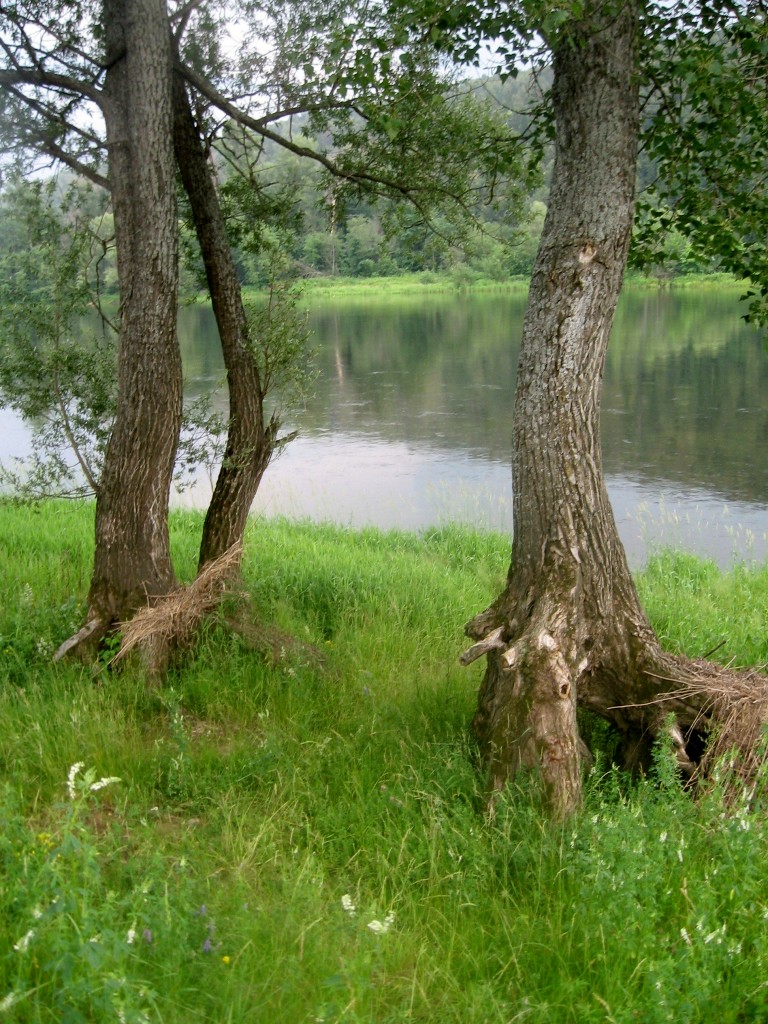 Уфимское плато заканчивается, долина реки расступается, заканчиваются горы, покрытые дремучими лесами, и начинаются поля и перелески. Река становится шире и спокойнее.