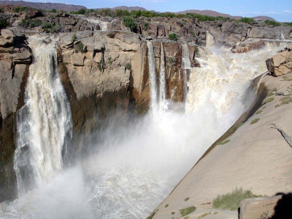 Водопад Augrabies на реке Оранжевой, Южная Африка, находится в Национальный парке имени себя. Он примерно 60метров в высоту. Коренные жителей называют водопад Ankoerebis, «место большого шума», из которого буры, которые поселились здесь позже, произвели название Augrabies. Ущелье у водопада Augrabies составляет 240 м в глубину и 18 км в длину, и является впечатляющим примером эрозии гранита.