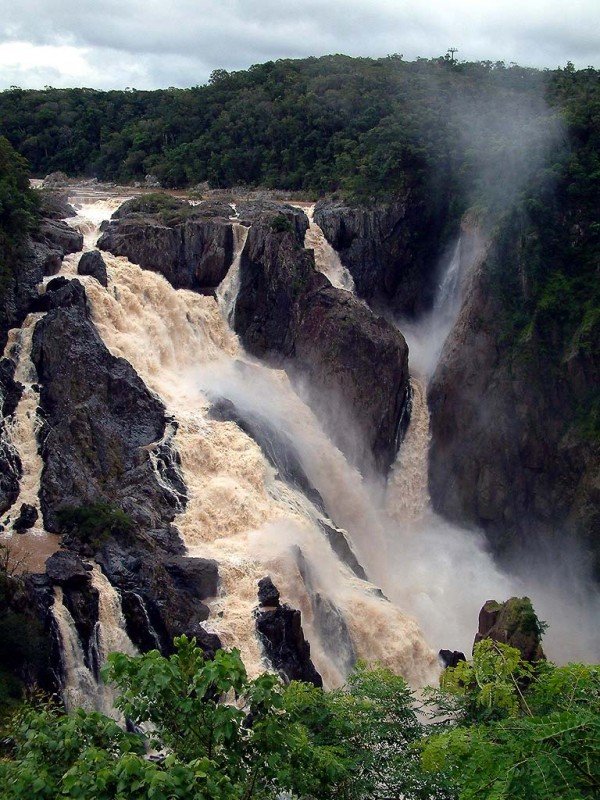 Водопад Баррон (Barron) это место где река Баррон делает снижение с плато Атертон к прибрежной равнине Кэрнс, в Квинсленде, Австралия, и является национальным парком. Объем воды, видимый на фотографии, возникает только после существенных осадков во время сезона дождей. На протяжении остального времени года, видна лишь чуть больше, чем струйка, что отчасти объясняется наличием плотины перед водопадом.