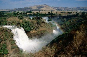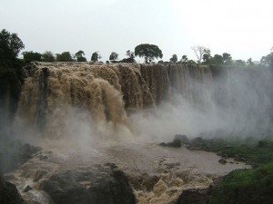 Водопад Голубой Нил находится на реке Голубой Нил в Эфиопии. Он известен как Т Issat на амхарском языке, что в переводе, означает "курение воды" Он расположен на верхнем течении реки, примерно в 30 километрах вниз по течению от города Бахр-Дар и озера Тана. Водопад считается одним из самых известных в Эфиопии туристических достопримечательностей. Водопад Голубого Нила, по оценкам, имеет высоту от 37 до 45 метров, и состоит из четырех потоков, расход которых варьируется от просачивания в сухой сезон до 400 кубометров в секунду в сезон дождей.