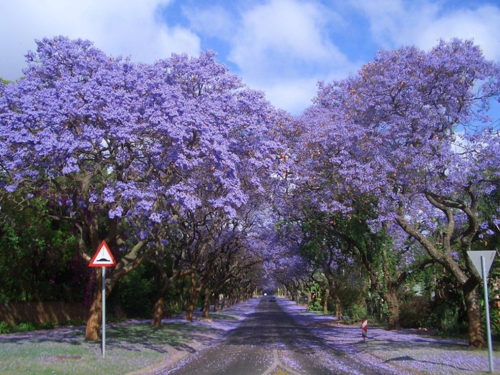 В черте города Йоханнесбург ЮАР есть аллея, которая засажена деревьями жакоранды. Жакоранда, или фиалковое дерево, очень популярна в южном полушарии, родом она из Латинской Америки. Сто лет назад жакоранду завезли в Африку и сегодня в Йоханнесбурге и Претории можно встретить около 50-ти её разновидностей. Фиалковое дерево цветёт в октябре, в это время распускаются тысячи бутонов удивительного оттенка, превращая городскую аллею в пурпурный туннель.