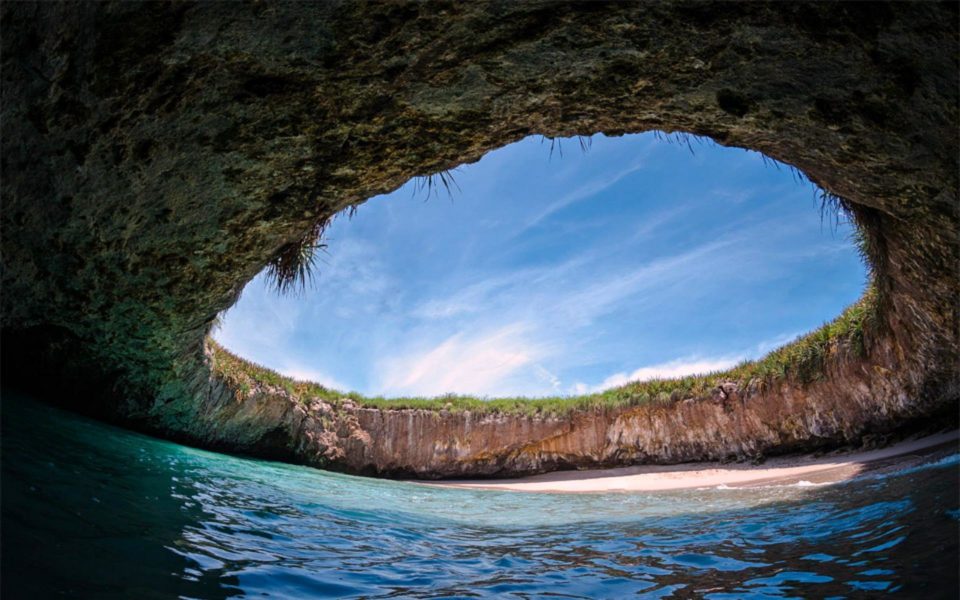 Уединенный пляж на островах Мариета в Пуэрто-Вальярта, Мексике сформировался несколько десятилетий назад. В середине прошлого века острова архипелага являлись полигоном для испытания оружия мексиканской армии, на которых была проведена серия контролируемых взрывов. Эти бомбардировки привели к появлению множества пещер и других уникальных скальных формирований на островах Мариета. Когда военные покинули архипелаг, волны, солнце и ветер закончили формирование природных диковинок. Отшлифовали камни, выровняли воронки от взрывов, придав рельефу островов удивительные очертания.