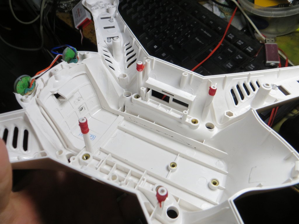 Вообще-то любая ВЧ техника старается избежать электромагнитных наводок, как принимаемых так и излучаемых, отчего ограждается от внешнего мира металлическими (либо металлизированными) экранами. Хоть самые дешевые планшеты с телефонами, хоть автонавигаторы, хоть другая высокочастотная электроника - у всех пластик корпуса металлизирован изнутри, а землю всех деталей соединяет металлизированный скотч. Тут же ВСЕ_ПЛОХО! И сам корпус, и корпуса внутренних модулей просто пластиковые, без малейшего намека на экранирование. Более того, крупные узлы - в первую очередь регуляторы моторов - не отделены по синфазной составляющей! А ведь широко разнесенные лучи с моторами - отличный диполь для какой-нибудь подходящей частоты...