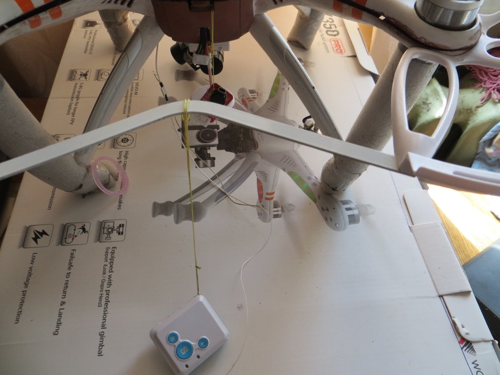 Ка бы то ни было, к концу новогодних каникул ОНО ПРИЕХАЛО! Конечно же, сразу после получения мы выехали произвести проверочный полет, чтобы убедиться что все работает, а во избежание авиакатастроф коптер, в лучших традициях вертолетостроения, был привязан за ногу веревочкой: с высоты 1 метр падать безопасно.