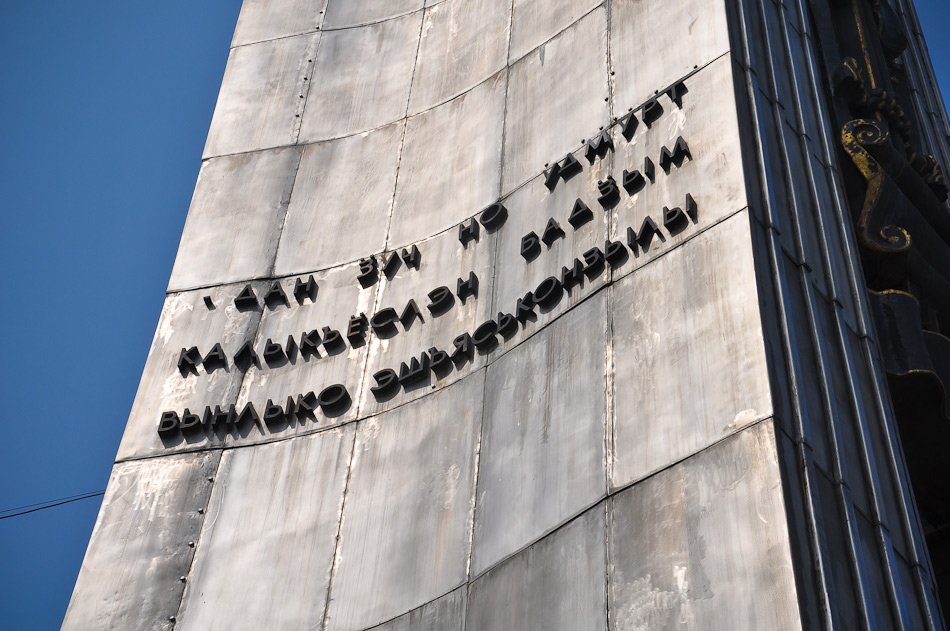 Среди жителей Ижевска есть и другое название монументу - "Лыжи Кулаковой". Действительно, памятник напоминает лыжи, а в Удмуртии с лыжами связано имя Галины Кулаковой - олимпийской чемпионки в этом виде спорта.