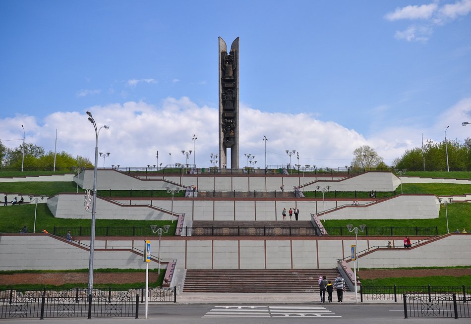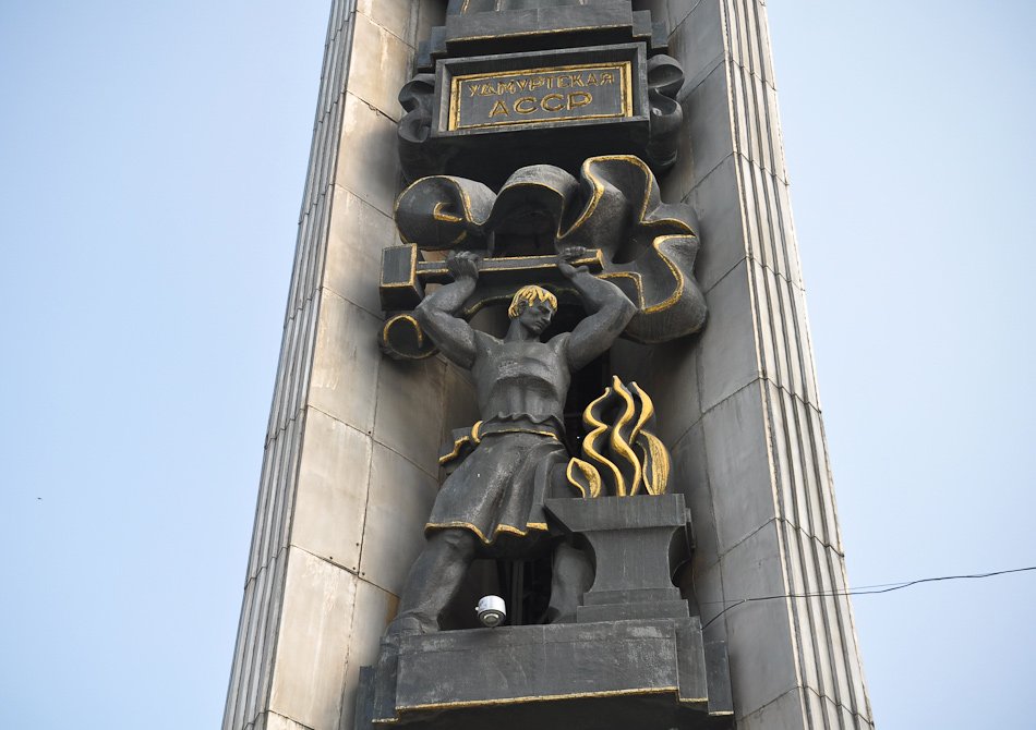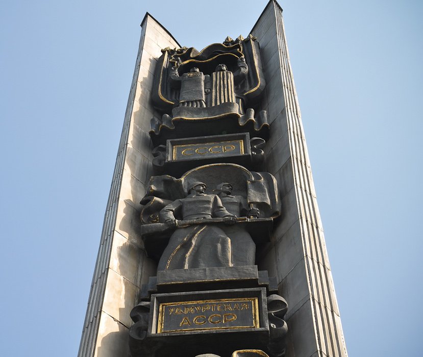 Монумент был официально открыт в 1972 году в честь 400-летия вхождения Удмуртии в состав России. Памятник облицован нержавеющей сталью и имеет высоту 46 метров. Между двумя огромными пилонами, символизирующими Удмуртию и Россию, расположилось множество позолоченных металлических рельефов, изображающих жизнь рабоче-крестьянского народа.