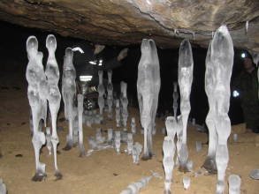 Первым идёт грот Температурных аномалий - это довольно объёмный зал в котором зимой сухо, а летом холодно и весь он покрыт инеем.
