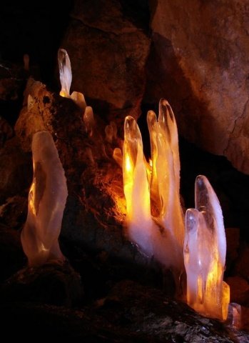 В пещере живут летучие мыши. Температура воздуха на первых 3 этажах зависит от температуры воздуха на поверхности земли. На нижних этажах она постоянная: 3-4 градуса.