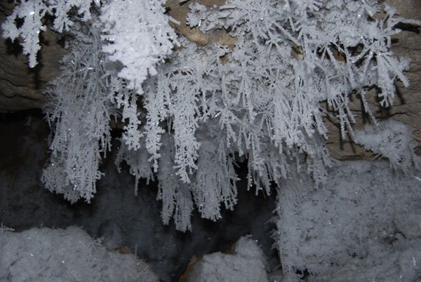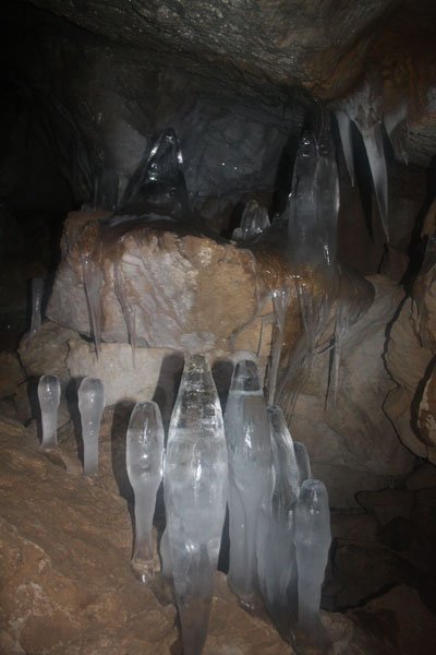 Верхний этаж пещеры прослеживается от входа до восьмиметрового колодца. Эта часть пещеры - ледяная, здесь образуются кристаллы, кристаллы, сталактиты, сталагмиты и колонны, некоторые из них прозрачные, также есть и молочно-белые.