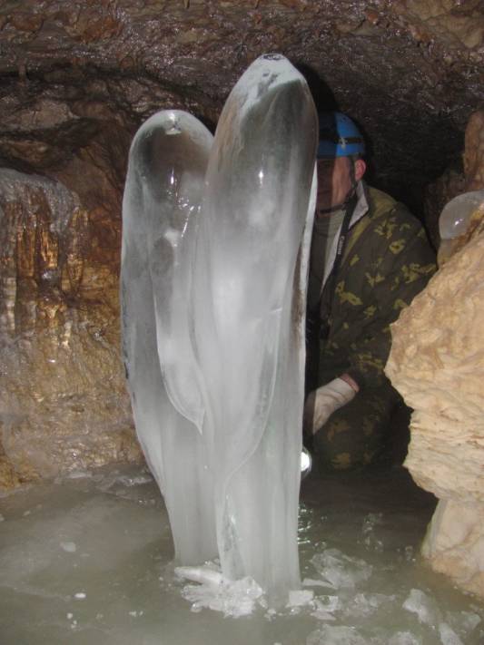 В холодные сезоны в привходовой части пещеры наростают красивые, величественные формы кристалов льда.