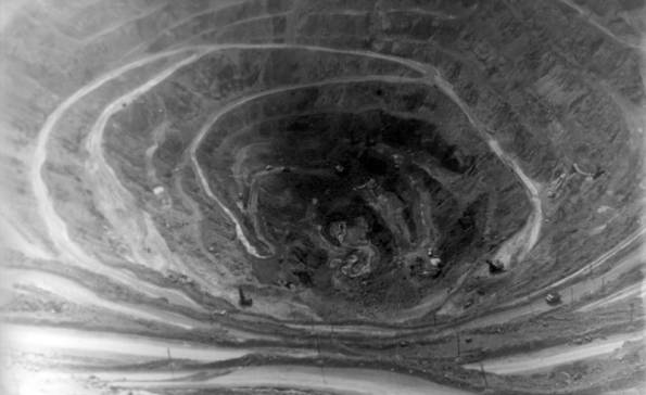 Раньше по дороге, которая опоясывает черно-рыжие склоны карьера, ездили громадные Белазы - огромные 60-тонные самосвалы высотой в несколько метров. Наверху карьера они казались маленькими крошечными игрушками.
