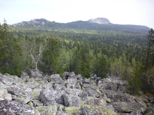 Восточнее хребта Большой Таганай находится хребет Малый Таганай, между ним и горой Двуглавая Сопка протянулась на шесть километров красивейшая каменная река. Многие склоны вершин представляют собой нагромождения каменных глыб, которые застыв в огромном потоке, образуют у подножия целые каменные реки - курумники.