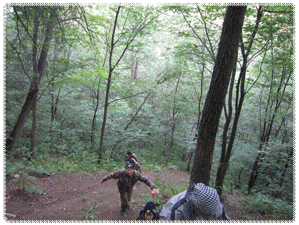 На стоянку перед Олимпийской мы добрались к вечеру, спрятав машины в кустах, собрав необходимое снаряжение, мы отправились к пещере. До неё был не лёгкий подъём по склону горы сквозь заросли леса. По пути сделали пару остановок отдохнуть, попить воды.