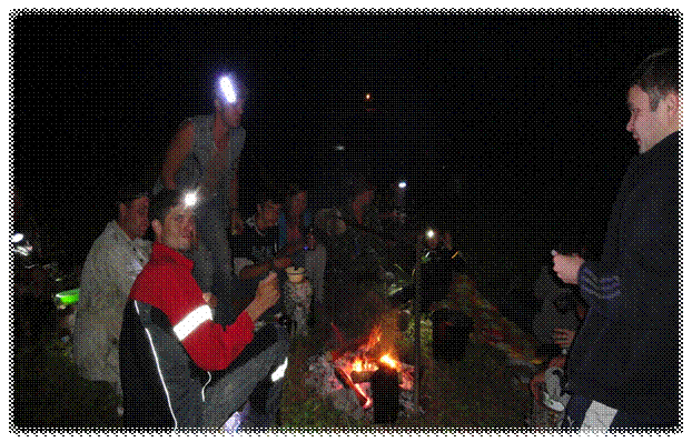 Разбили лагерь, перекусили и собрались возле костра, где каждый поделился своими впечатлениями прошедшего дня.