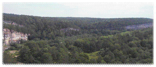 Когда мы все вернулись на стоянку, поднялся шквальный ветер и начался дождь. Даже пару деревьев упали рядом с нашими машинами. Буд то природа проверяла нас на прочность, но это всё длилось не долго, и вскоре снова выглянуло солнце и мы благополучно продолжили свой путь. Дальше наш маршрут лежал к Серпиевским пещерам. Места там красивые. С места нашей стоянки открывалась широкая панорама лесов и холмов.