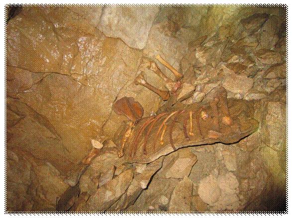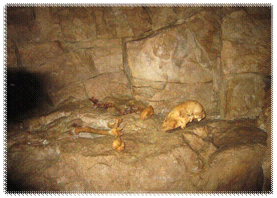 Возле входа много костей животных.