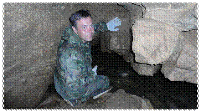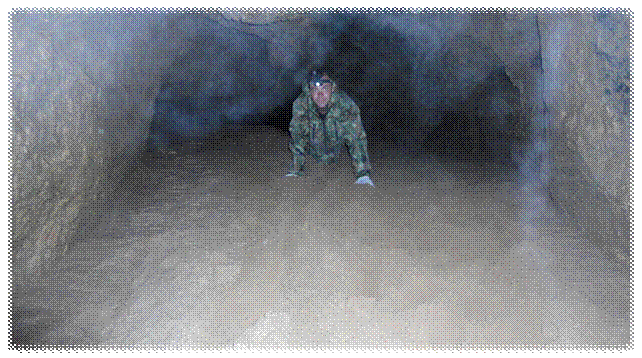 По его лицу видно, сколько он потратил сил, чтоб выбраться через этот узкий лаз. Лаз на самом деле настолько узкий, что попав в него двигаться можно только вперёд, назад не развернуться. Пройдя первый узкий лаз, попадаешь в ещё один более узкий лаз, только после них уже можно легко вздохнуть, но дышать более 8 часов там не рекомендуется из-за скопления сероводорода.