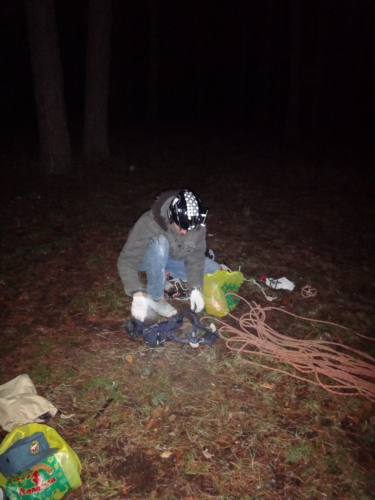 Был опрометчивый поступок положить каску на край какого то провала, и мы убили пол часа времени что бы опустить туда тело виновника и вытащить его от туда, запасная верёвка пригодилась.