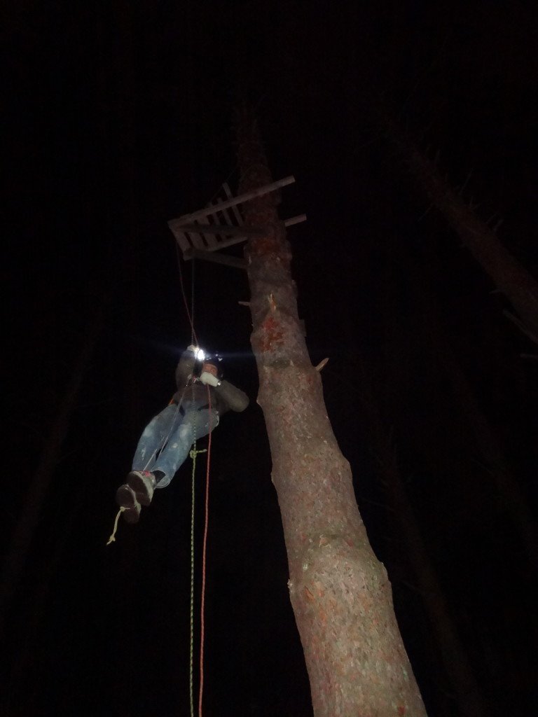 Три куска веревки (30, 40, 30) нам хватило выше крыши и еще одну взяли на всякий случай.