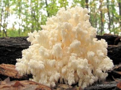 Похож на веточку или веточку коралла, или веточку можжевельника с короткими иголочками, которую окунули в белила. Но больше всего ежовик коралловидный напоминает зимнюю веточку дерева, покрытую инеем. И действительно, дерево, на котором разрастается ежовик коралловидный, покрывается белоснежным сугробом грибов. Гриб этот очень редкий и занесен в Красную Книгу. Появляется он раз в несколько лет, в сезон, когда дожди летом льют почти не прекращаясь. Однако редким этот гриб был и несколько столетий назад! В средневековом трактате о биологии под названием "Кодекс Клузиуса", описывающем известных на тот момент животных и растений, описание и рисунок этого гриба помещены в разделе редкостей и диковинок природы, наряду с драконами,сиренами и единорогами!
