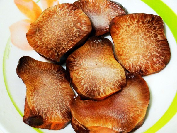 В большинстве случаев гриб оказывается несъедобен из-за жесткой мякоти и неприятного запаха. Однако в некоторых районах России молоденькие грибочки едят. Мы уверены: лучше вешенкой оранжевой любоваться, хоть она и выглядит зимой довольно аппетитно.