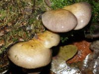 В отличие от предыдущих видов вешенка легочная может расти и на хвойных деревьях, но чаще ее увидишь на стволах дуба, березы, осины, бука. Ее боковые с короткой опушенной ножкой плодовые тела также образуют большие скопления. Мякоть этой вешенки более нежная, но довольно упругая.