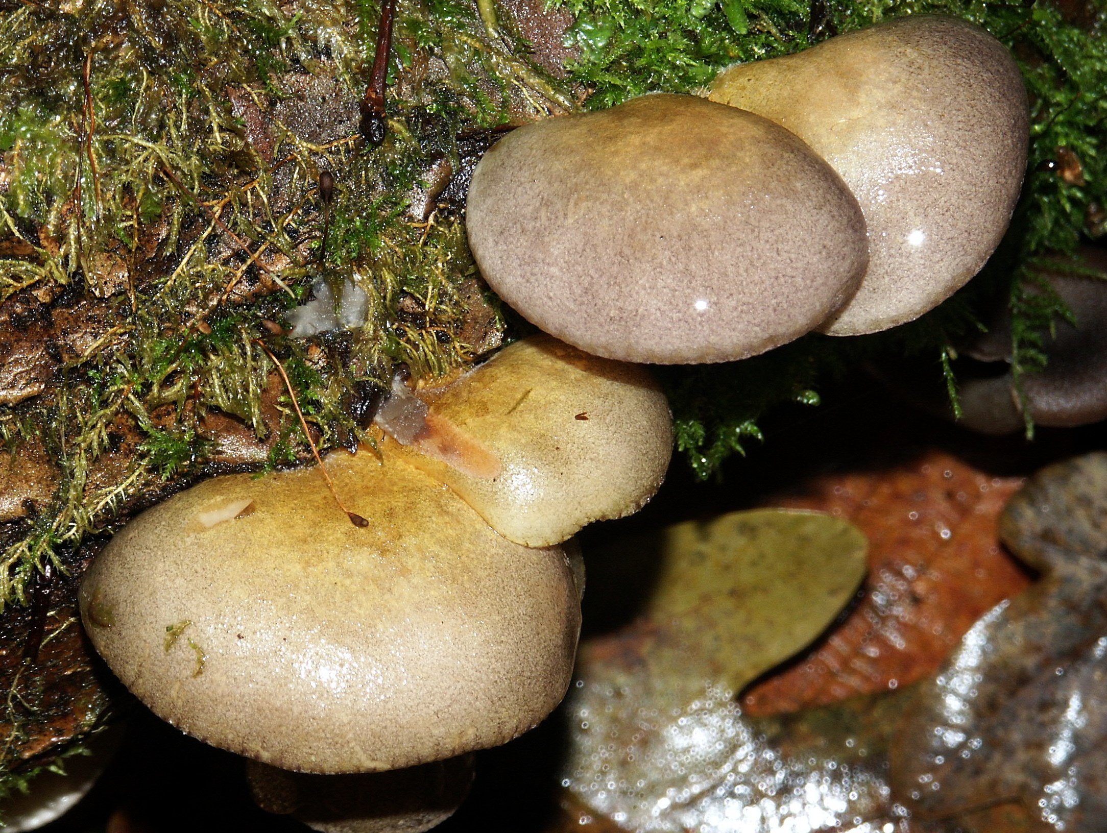 Вешенки бывают и светлые - бежеватые или буроватые, и темные - серые, буро-серые с фиолетовым отливом. Молодые грибы иногда почти черные. По мере роста темноокрашенные вешенки светлеют. Ножек у вешенки устричной почти нет.