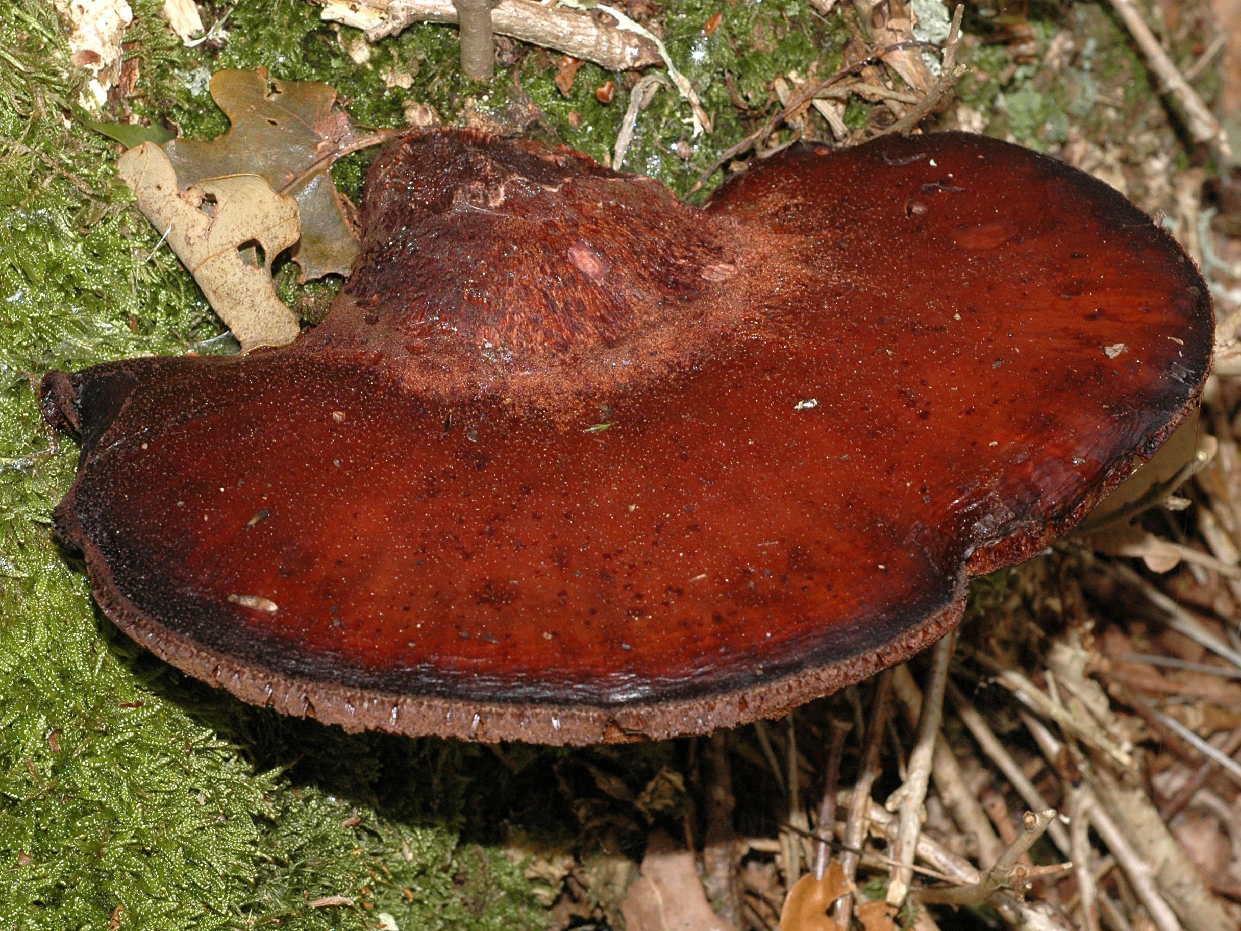 Печеночница формой напоминает трутовик, у нее полукруглая шляпка и боковая короткая ножка. Цвет гриба красновато-коричневый или оранжево-бурый. Растет печеночница на живых деревьях, в основном это дуб, каштан, реже другие лиственные деревья. Хотя мы встречали печеночницу, растущую на корнях старого пня.