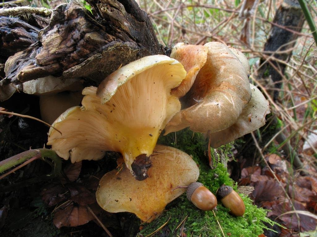 Однажды видели молодой желтик в середине октября - на пне лежало что-то желтое, подошли, оказалось недавно вылупившийся еще совсем мягкий гриб растет. Вот так описывается этот гриб в одной книге: "Представьте себе, что внутри ствола старого дуплистого дуба лешие развели желтое тесто, оно "сбежало" и через трещины и расщелины коры вылезло наружу, да так и застыло - пузырями и наплывами." Гриб съедобен как раз в стадии "теста", молодым он бывает таким мягким и нежным, чем-то по вкусу напоминает омлет. Важно не прозевать, плодовое тело быстро стареет и древенеет.