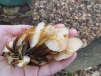 Народные названия: опенок зимний. Растет этот гриб в октябре-ноябре, но в теплые, мягкие зимы рост гриба в южных регионах продолжается до весны. Он то замерзает, то оттаивает, но живет. Растет зимний гриб, как и опенок, большими "букетами", иногда по нескольку десятков грибов вылезают из щели в коре.