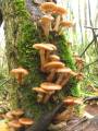 Самые известные из таких грибов - это опята, само название "опенок" означает "гриб на пне", оттого под ним скрывается множество не родственных между собой видов. Но кроме опят, на деревьях поселяется огромное количество грибов. Это и шляпочные грибы (чешуйчатки, вешенки) и трутовики, напоминающие копыта, полочки, раковины, растущие друг над другом, этажами. Как и у наземных грибов, то, что мы видим, - плодовые тела; мицелий же (грибница) развивается внутри древесины, разрушая ее. Поэтому такие грибы называют древоразрушителями, или ксилотрофами.