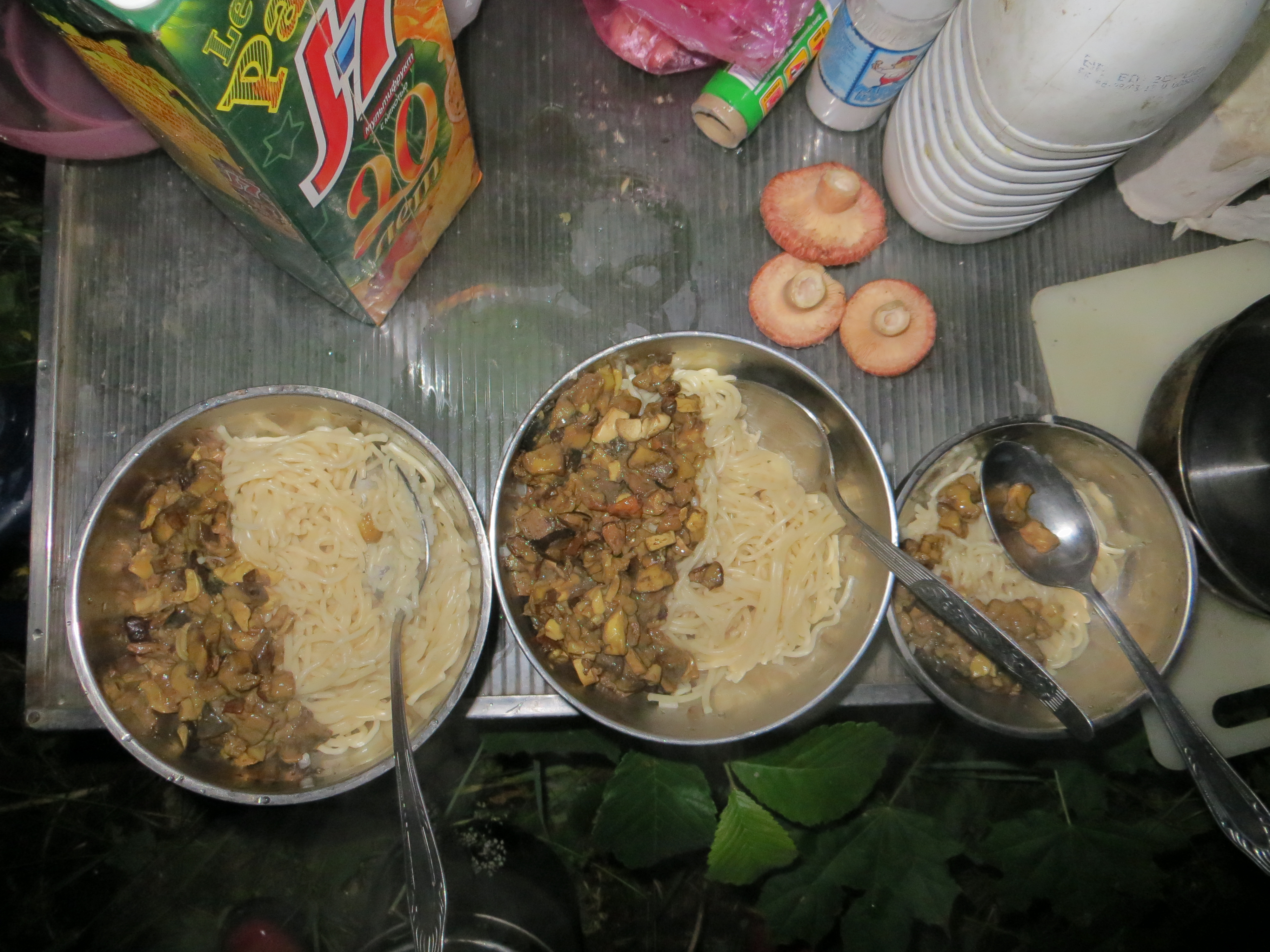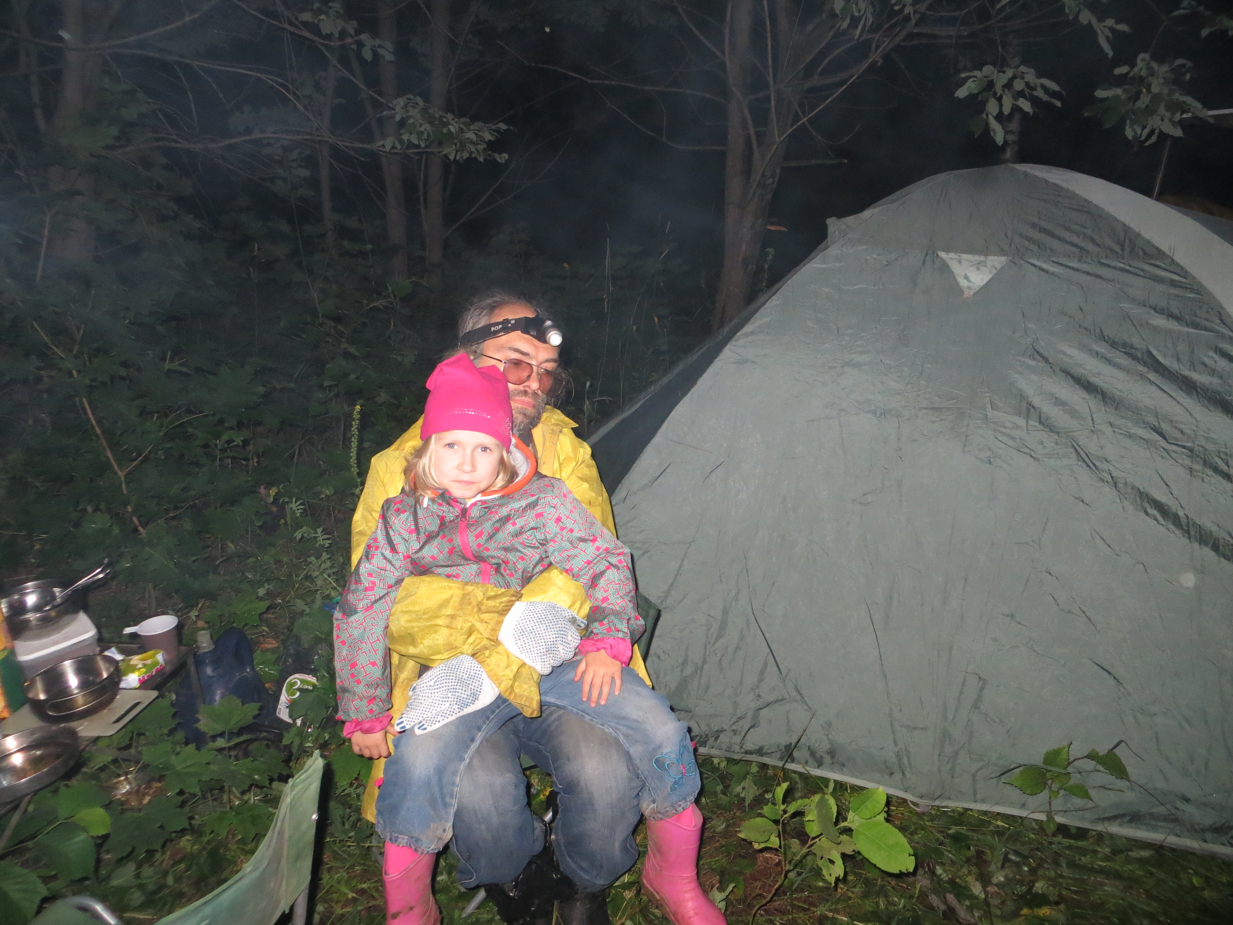Взяли корзинки, палатку, ребенку потеплее одели, и покатили вечером в пятницу в ту сторону. Упали на ночевку в придорожном леске. Всю ночь грибами пахло в палатке, а оказалось что мы на какой-то обабок ее разместили:) Утром прогулялись по лесочку, нашли подосиновиков, волнушек да сыроежек - как раз на завтрак пойдут.